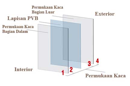 konstruksi kaca lapis tersebut juga memberi ketahanan terhadap penetrasi dan jika sampai pecah, pecahan kaca akan melekat pada PVB sehingga tidak berbahaya bagi orang sekitarnya.
